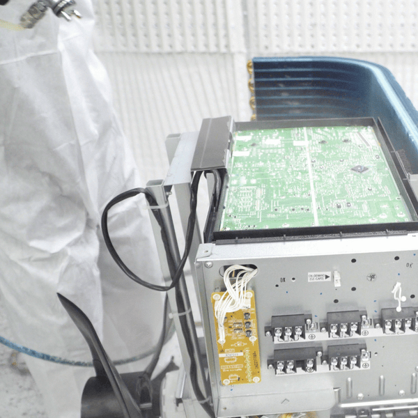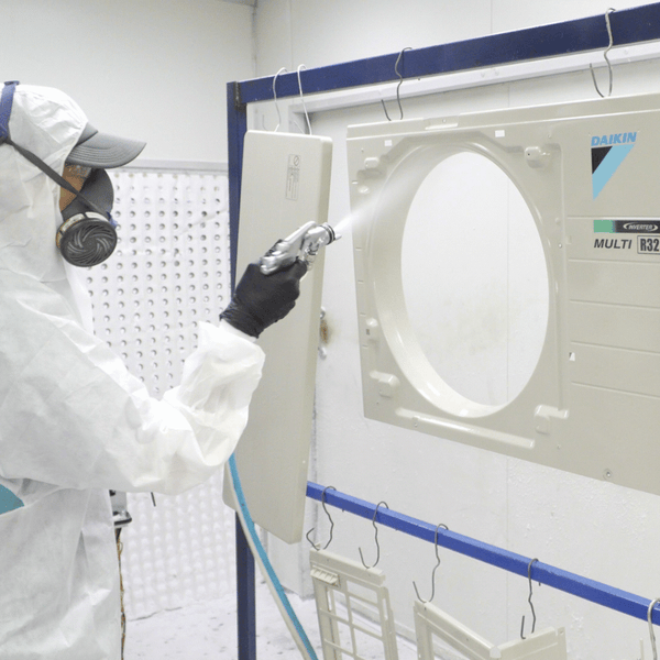 Our specialised process ensures thorough quality assured, high-quality application at every stage. Each unit is carefully dismantled, with all panels removed to allow access to the internal surfaces. Our highly trained technicians ensure every panel, coil, fin and board are coated with precision within our controlled spraybooth. Following coating the units are cured in our heat booth and then reassembled including the addition of nylon washers under all lid screws to assist in the protection to the most accessed component of any HVAC unit. To provide 360 degree protection all screws are also coated with Action HVAC-RT Aerosol. The addition of a coating sticker completes the process.